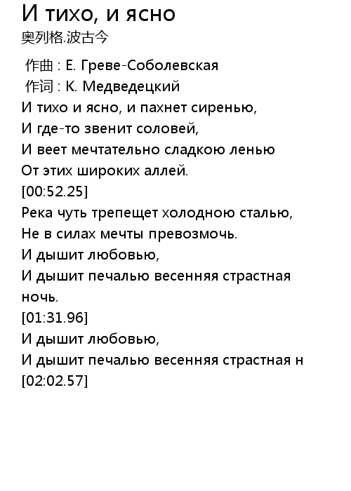 歌曲 И тихо, и ясно
