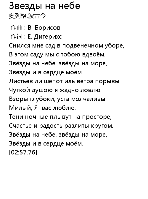 作词 : Е. Дитерихс |