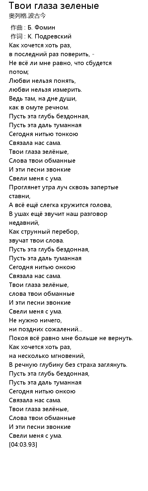 Твои глаза зеленые 歌词