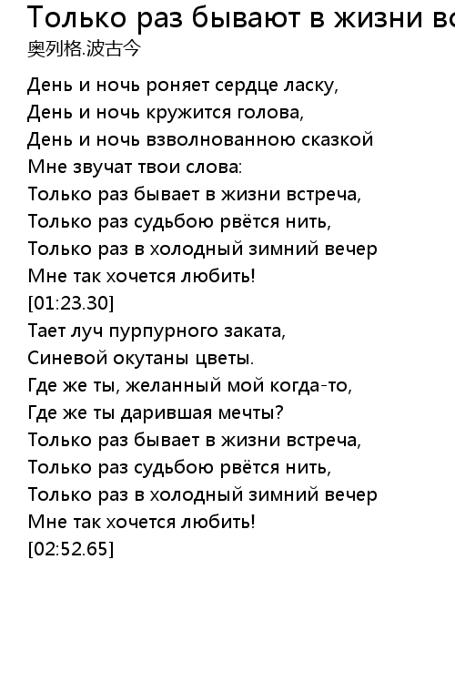 Только раз бывают в жизни встречи 歌词
