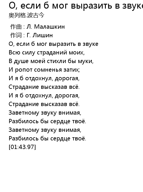 | 歌曲 | О, если б мог выразить в звуке |