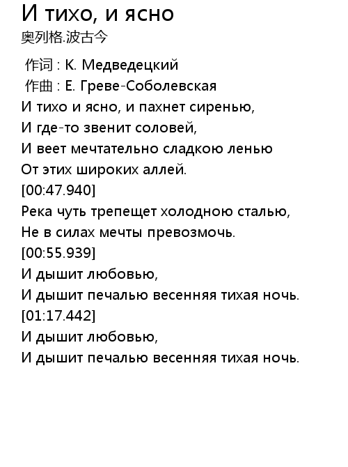 | 歌曲 | И тихо, и ясно |