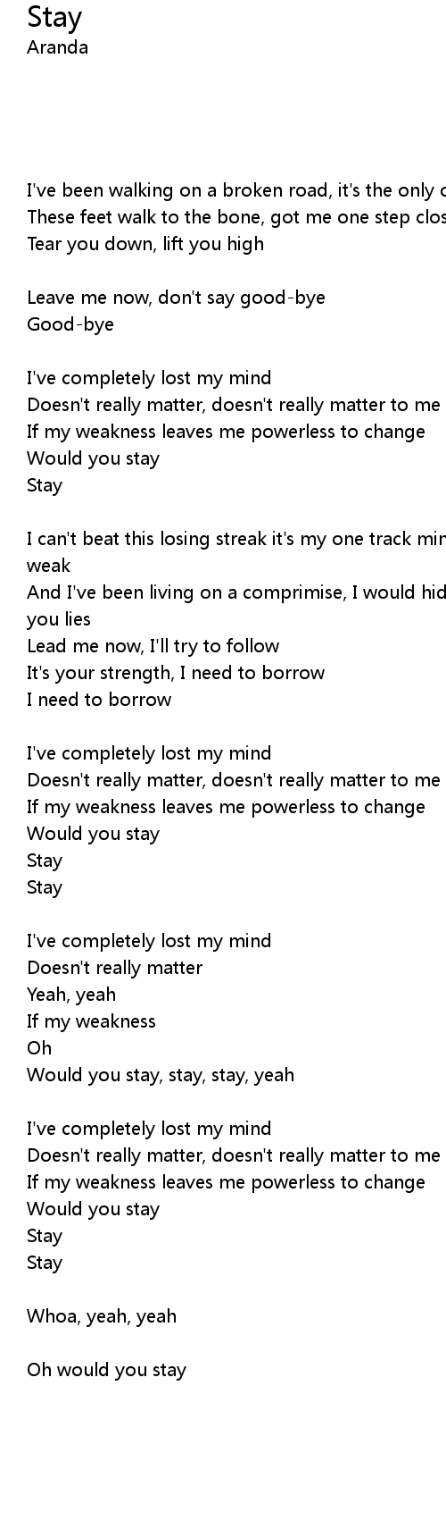 | [02:04.97] | Stay |