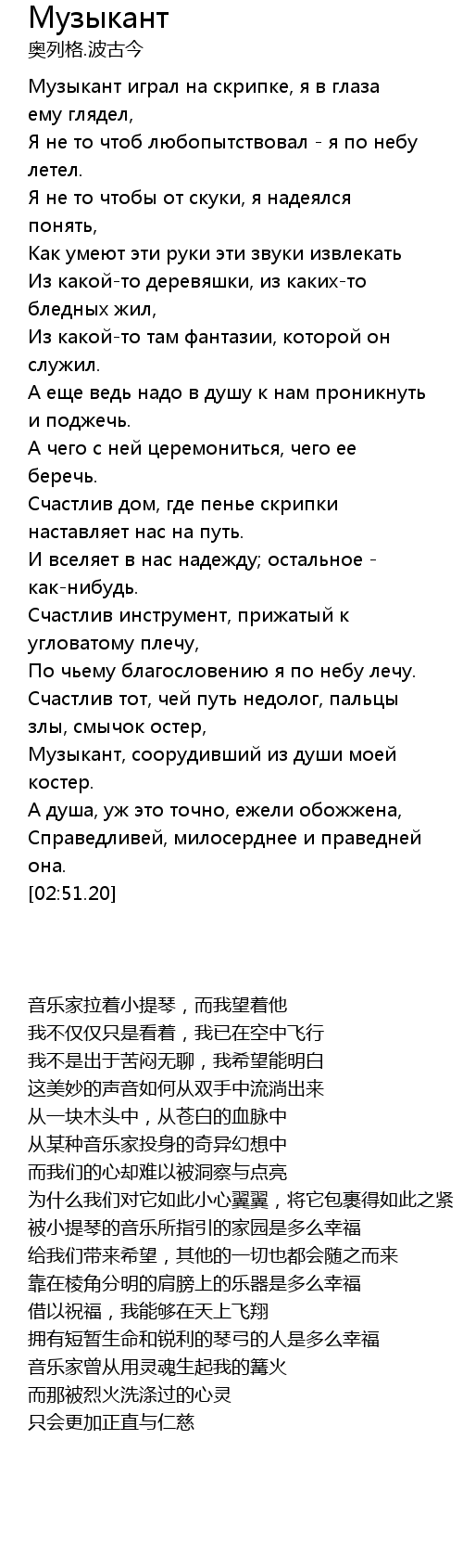 | [01:53.14] | Счастлив инструмент, прижатый к угловатому плечу, |