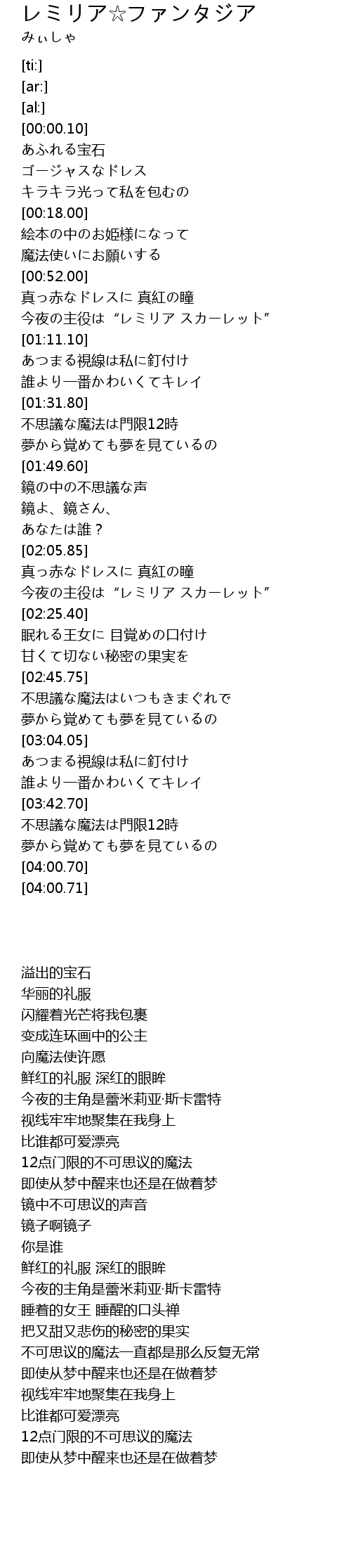 | [02:15.65] | 今夜的主角是蕾米莉亚·斯卡雷特 |