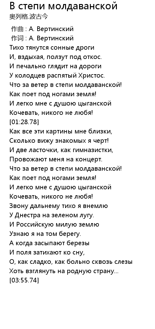 В степи молдаванской 歌词