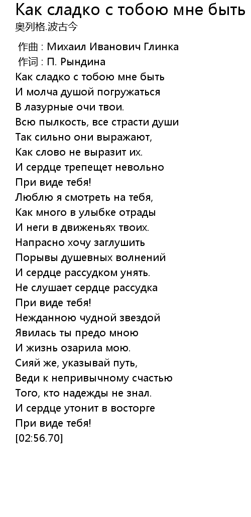 Как сладко с тобою мне быть 歌词