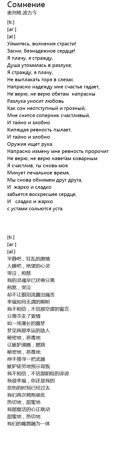 | 歌曲 | Сомнение |