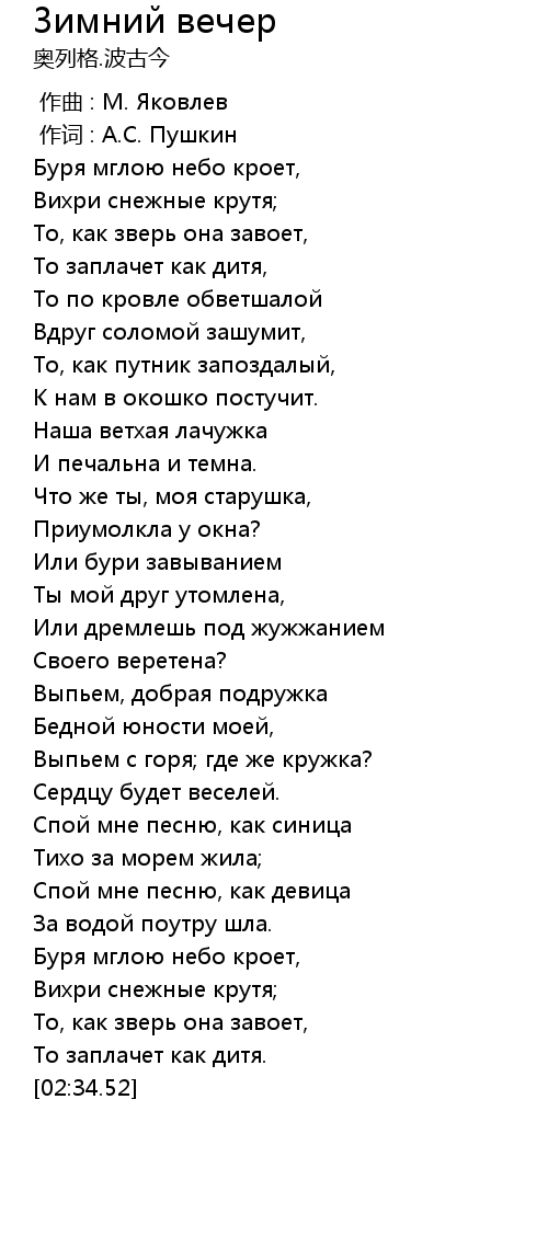 作词 : А.С. Пушкин |