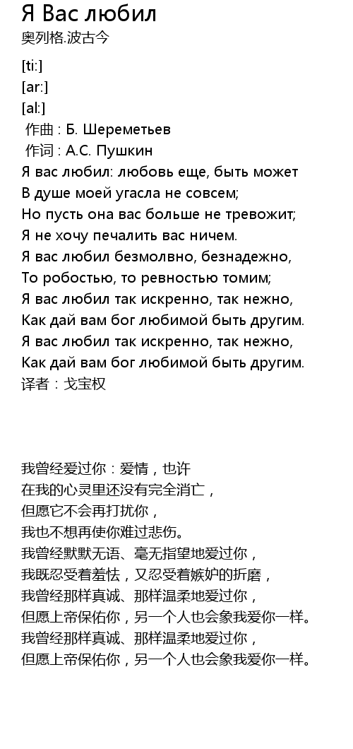 | 歌曲 | Я Вас любил |