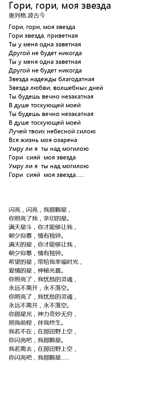 | 歌曲 | Гори, гори, моя звезда |