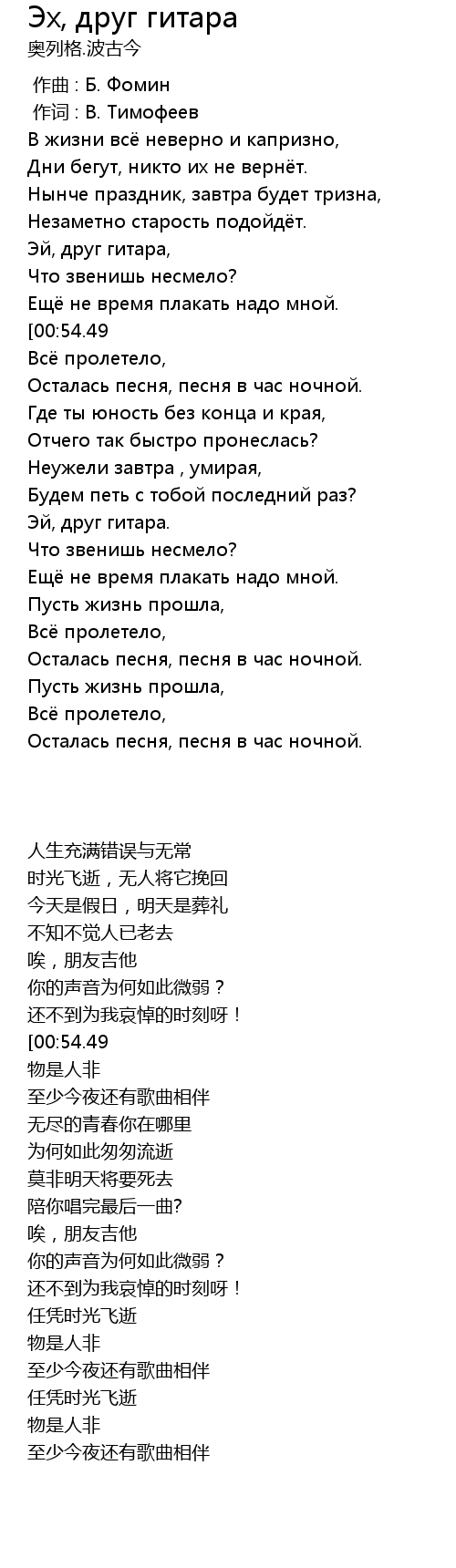 | [00:57.34][00:54.49] | Пусть жизнь прошла, |