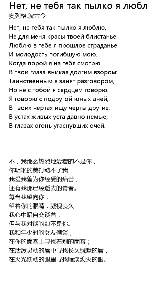 | 歌曲 | Нет, не тебя так пылко я люблю |