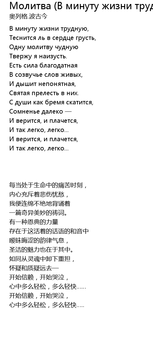 | 歌曲 | Молитва (В минуту жизни трудную) |