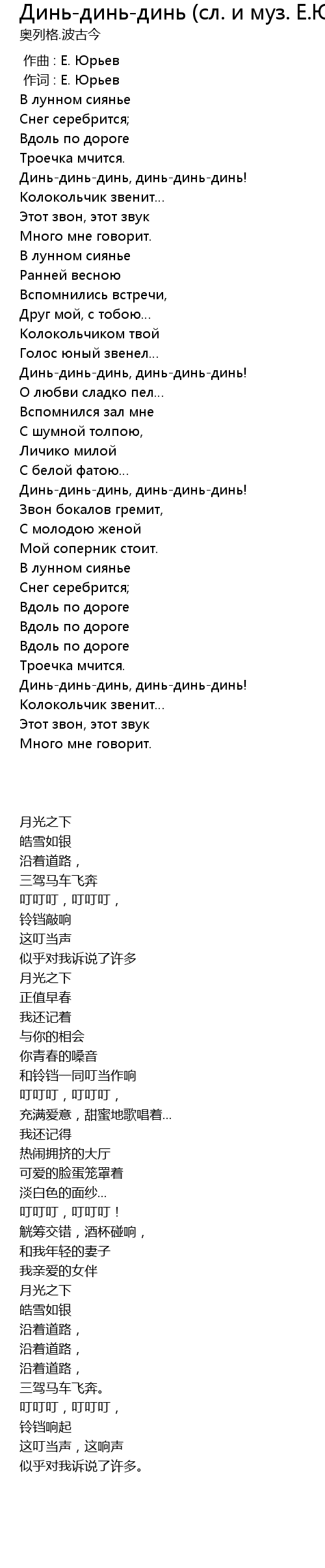 | 歌曲 | Динь-динь-динь (сл. и муз. Е.Юрьева) |