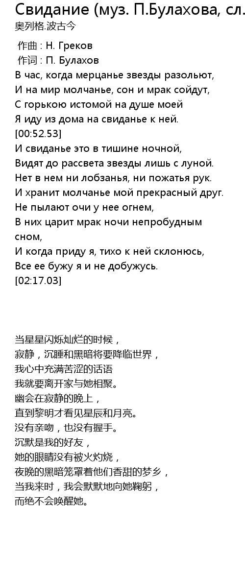 | [00:01.000] | 作词 : П. Булахов |
