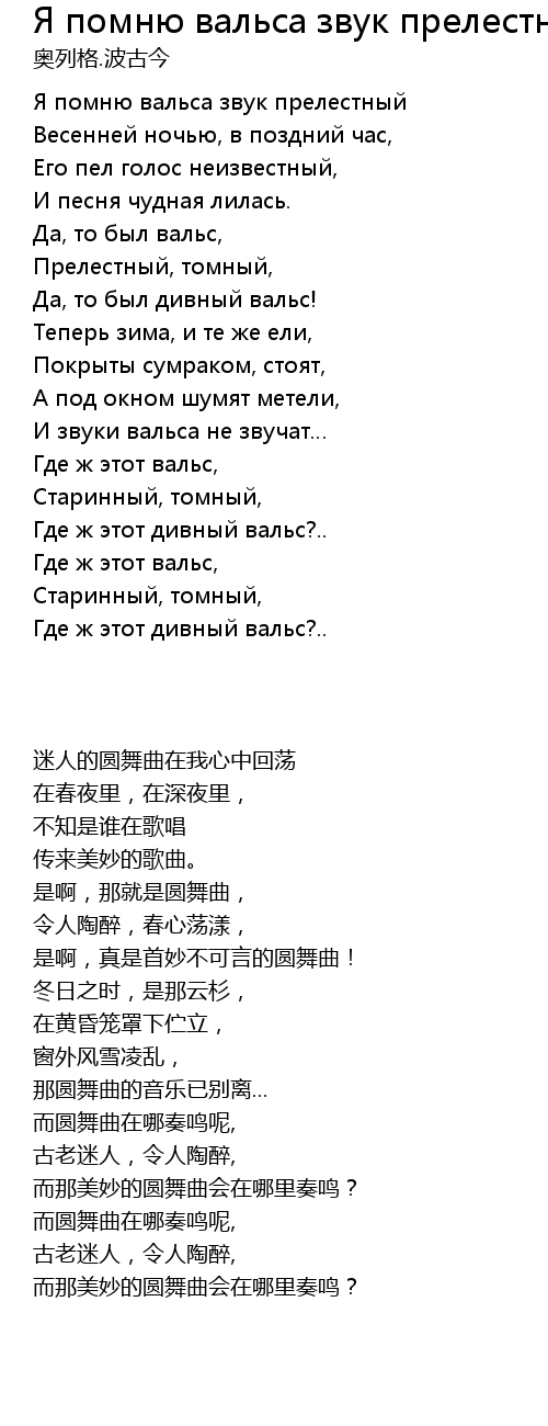 | 歌曲 | Я помню вальса звук прелестный (сл. и муз. Н.Листова) |