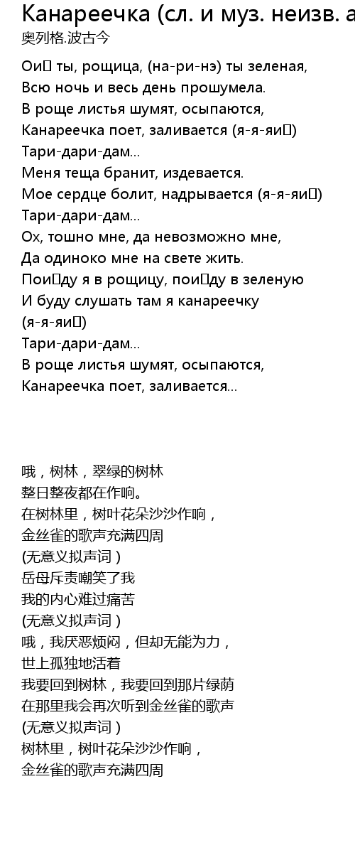 | 歌曲 | Канареечка (сл. и муз. неизв. автора) |