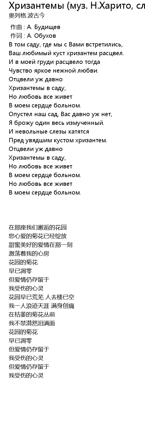 | 歌曲 | Хризантемы (муз. Н.Харито, сл. В.Шумского) |