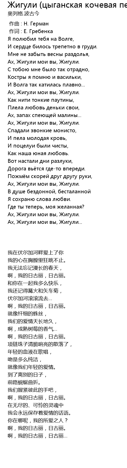 | 歌曲 | Жигули (цыганская кочевая песня) |