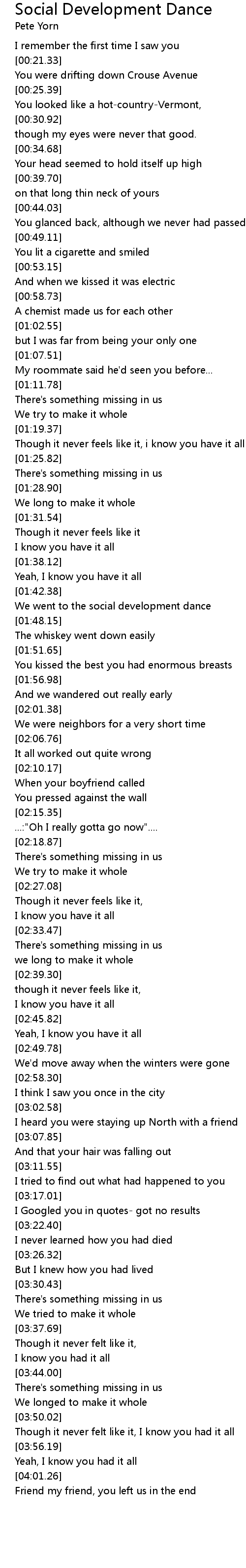 [00:23.27] You were drifting down Crouse Avenue