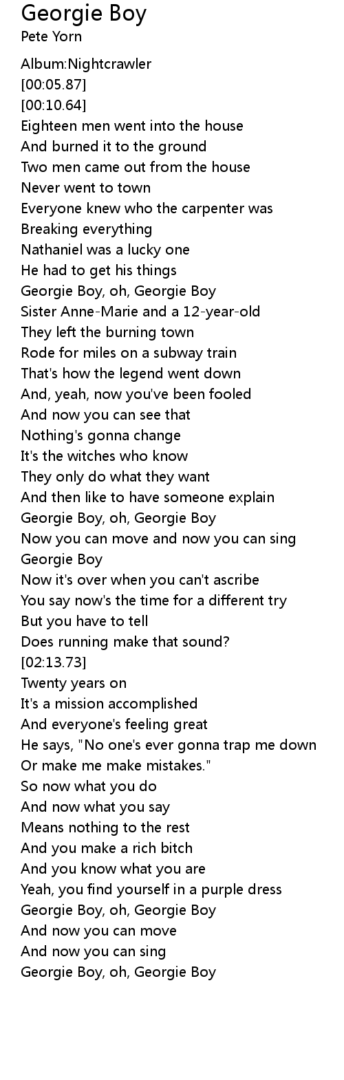 Georgie Boy, oh, Georgie Boy |