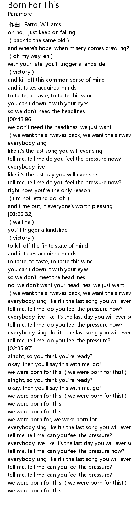 | [02:54.60] | we were born for this (we were born for this!) |