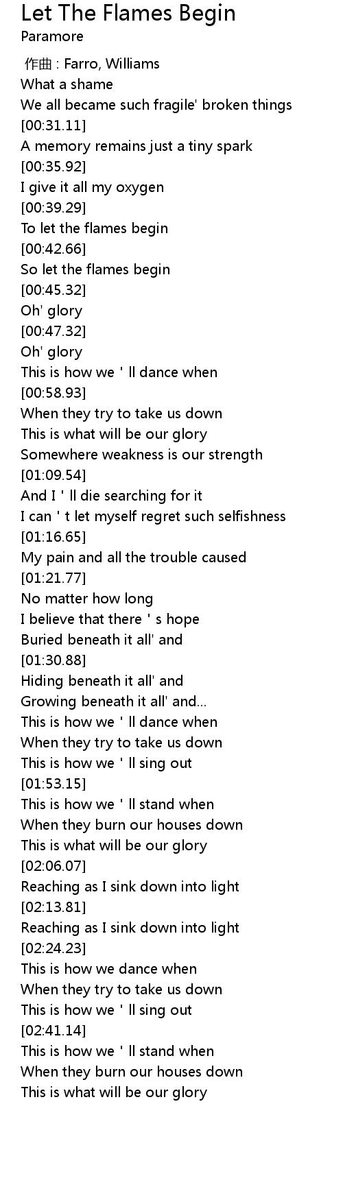 | [00:40.72] | To let the flames begin |