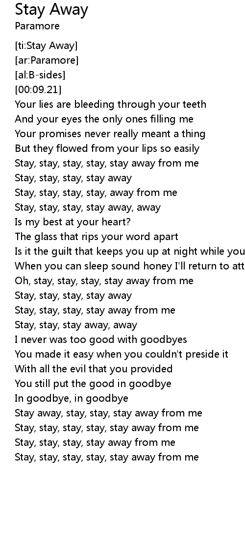 | [03:06.54] | Stay away, stay, stay, stay away from me |