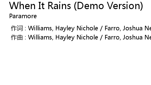 | [00:00.000] | 作曲 : Williams, Hayley Nichole / Farro, Joshua Neil / Farro, Zach |