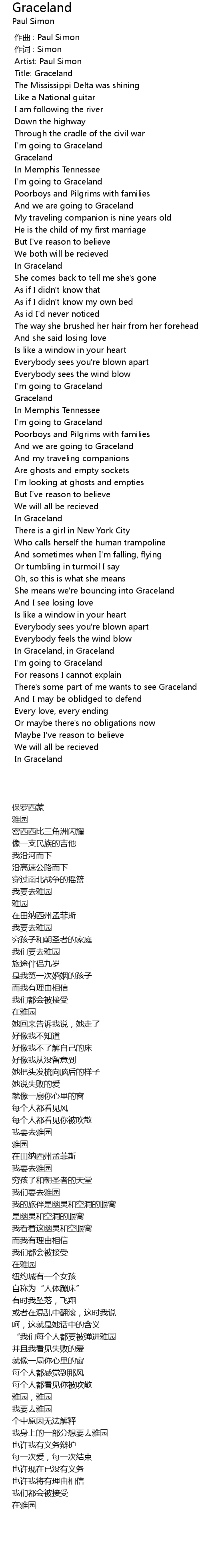 | [03:33.09] | There's some part of me wants to see Graceland |