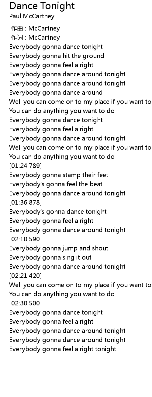 | [02:41.200] | Everybody gonna dance around tonight |