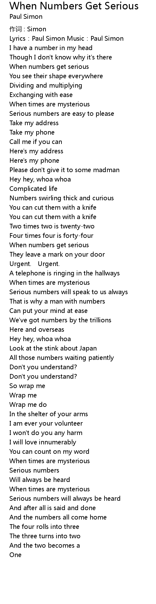 | 歌曲 | When Numbers Get Serious |