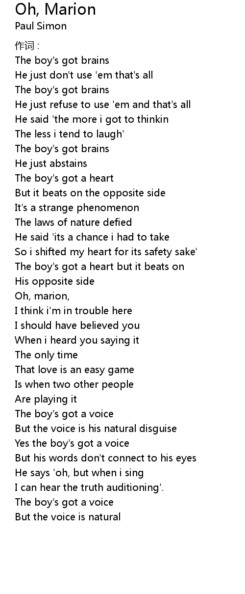 | Oh, marion, | |