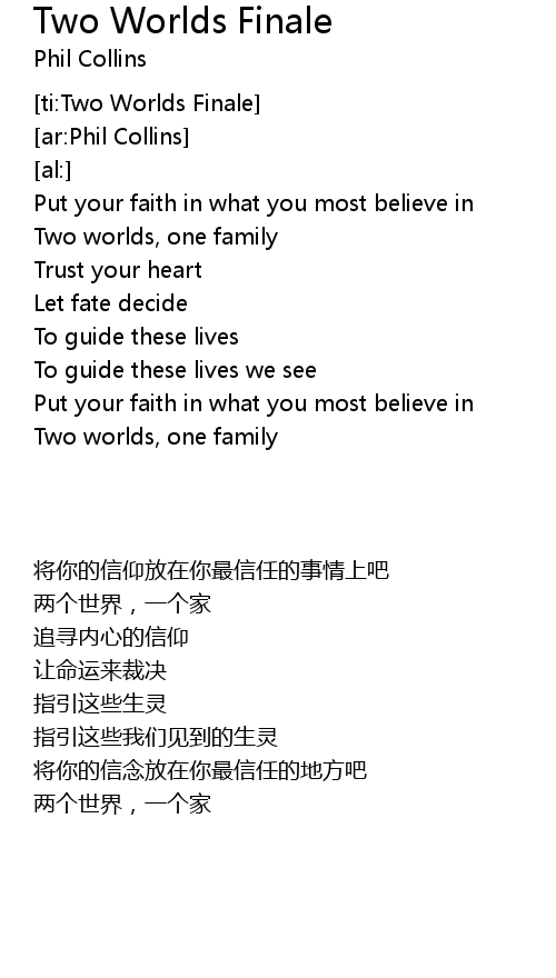 | [00:43.85] | 两个世界,一个家 |