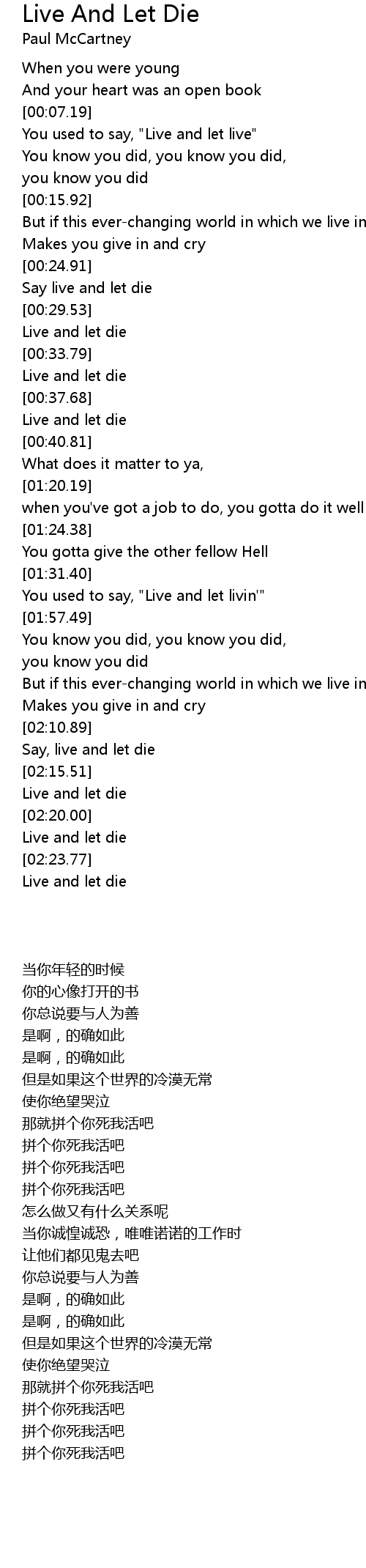 Live and let die |