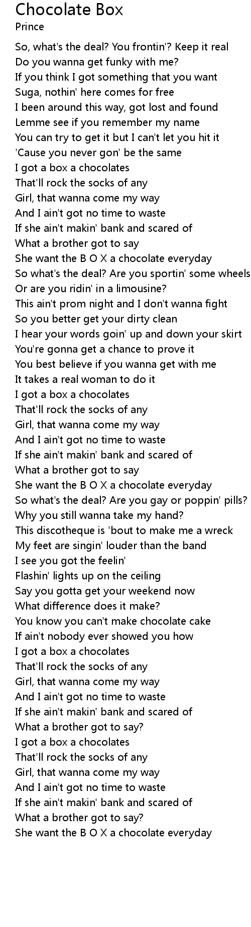 She want the B O X a chocolate everyday |