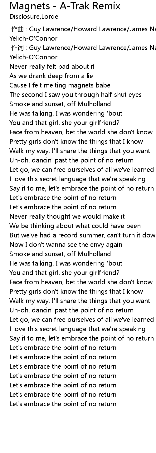| [00:38.91] | Cause I felt melting magnets babe |