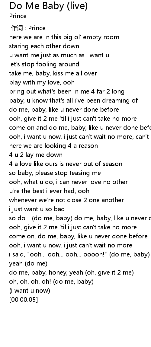 | [02:44.99] | so do... (do me, baby) do me, baby, like u never done before |