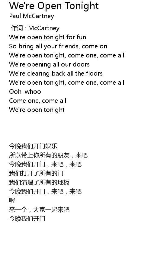 | 歌曲 | We're Open Tonight |