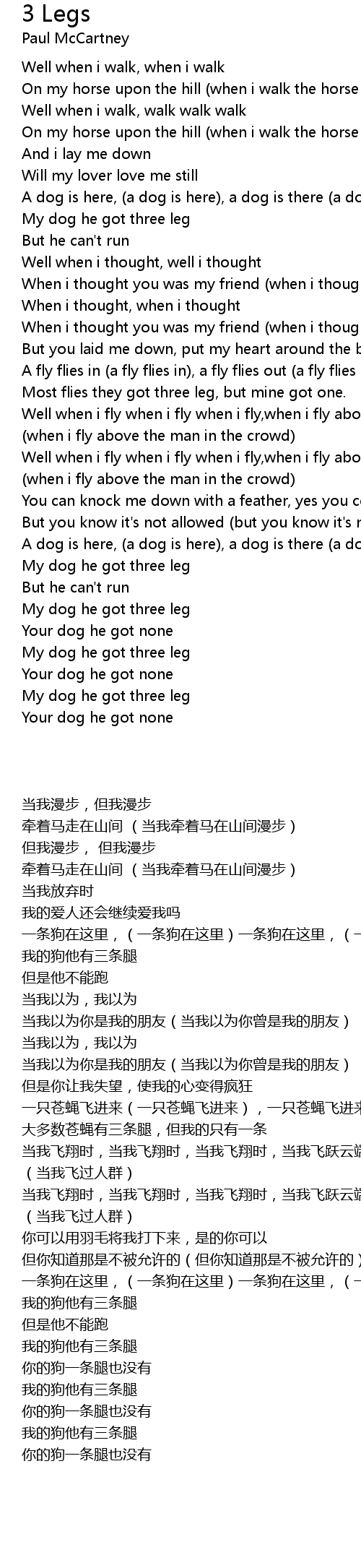 My dog he got three leg |