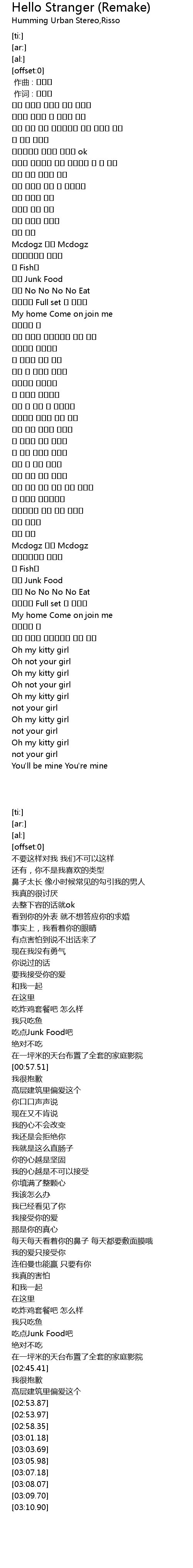 | [02:38.72] | 吃点Junk Food吧 |