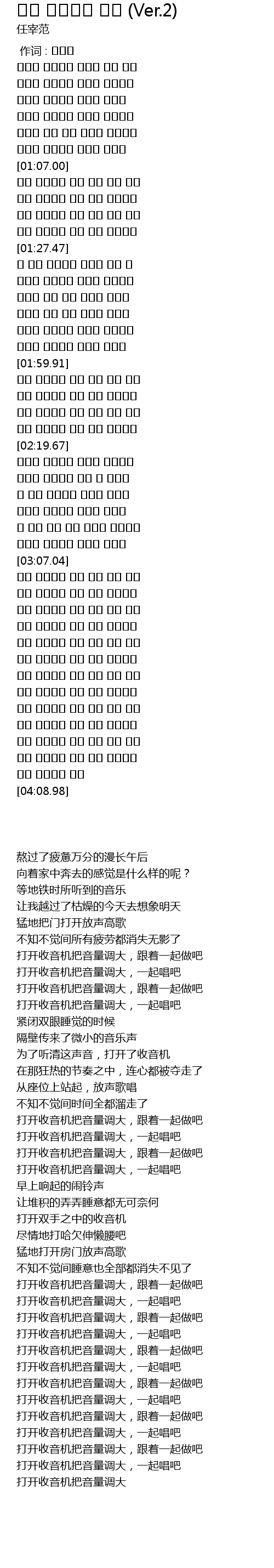 打开收音机把音量调大,一起唱吧 |