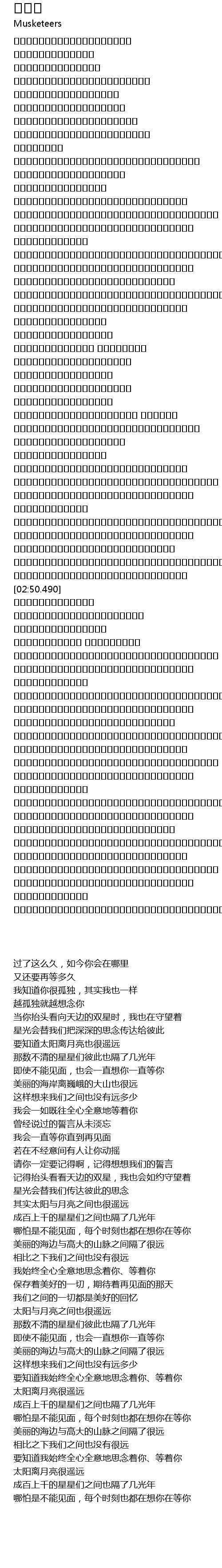 | [02:24.490] | 哪怕是不能见面,每个时刻也都在想你在等你 |