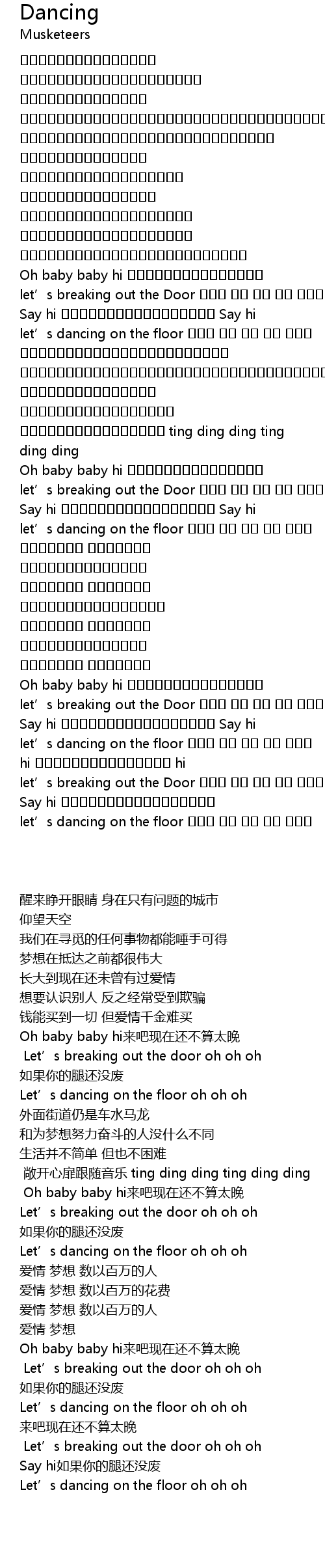 | [02:05.00] | Let’s dancing on the floor oh oh oh |