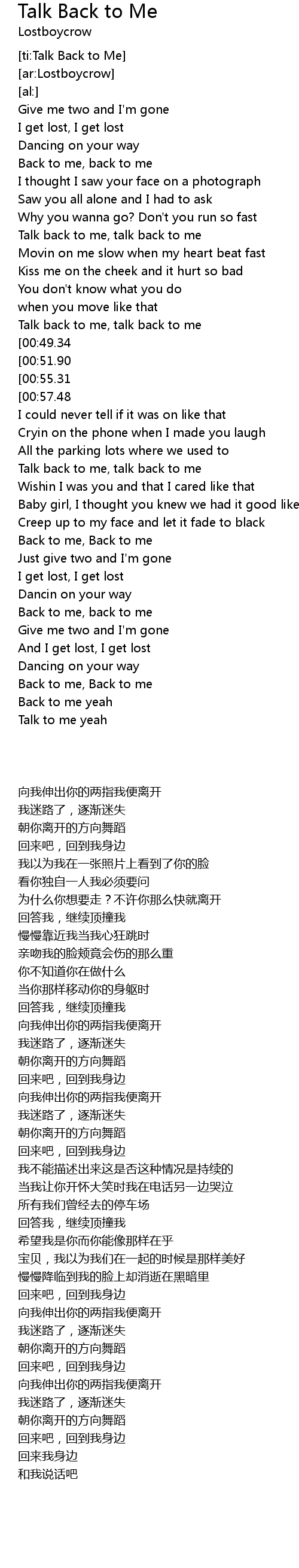 [ti:Talk Back to Me] |