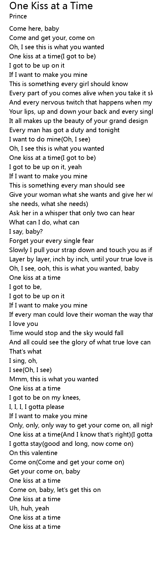 One kiss at a time(And I know that's right)(I gotta stay) |