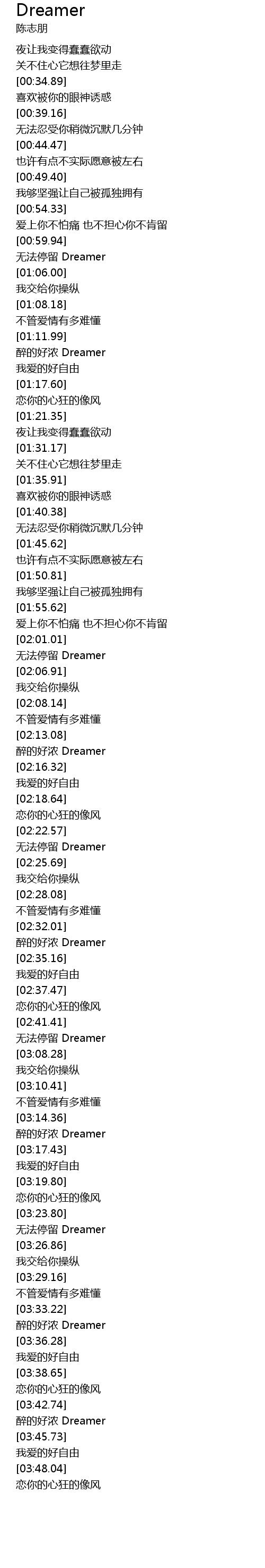 | [03:34.28] | 醉的好浓 Dreamer |