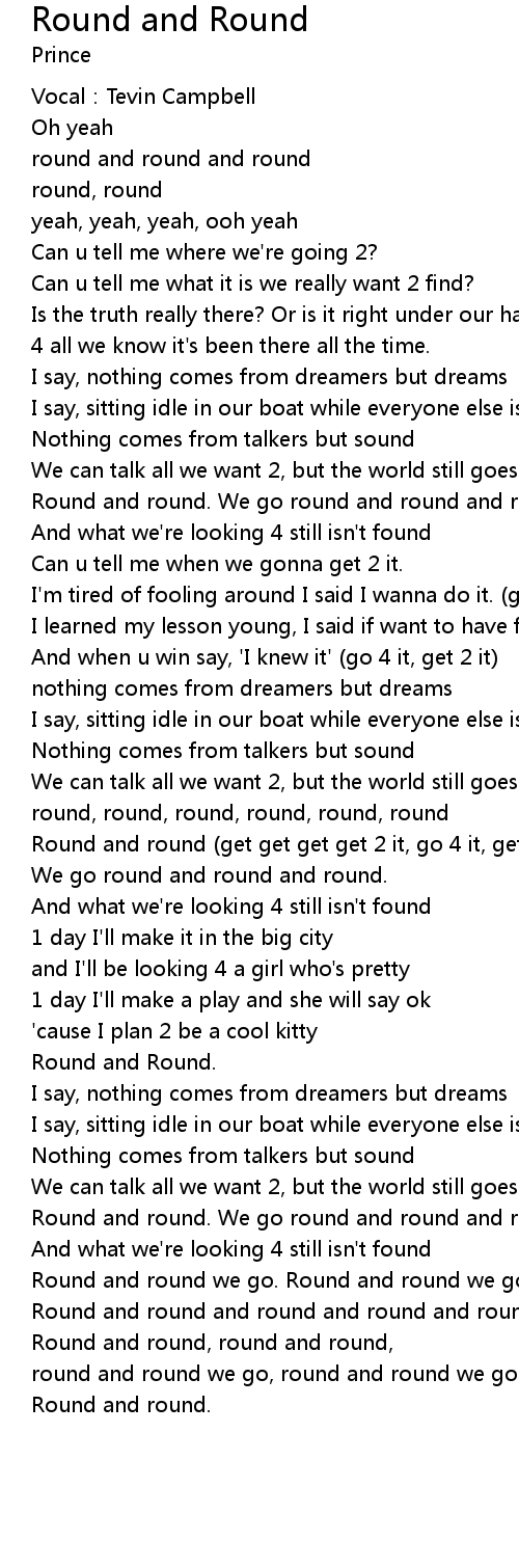 | Round and round get get get get 2 it, go 4 it, get 2 it | |