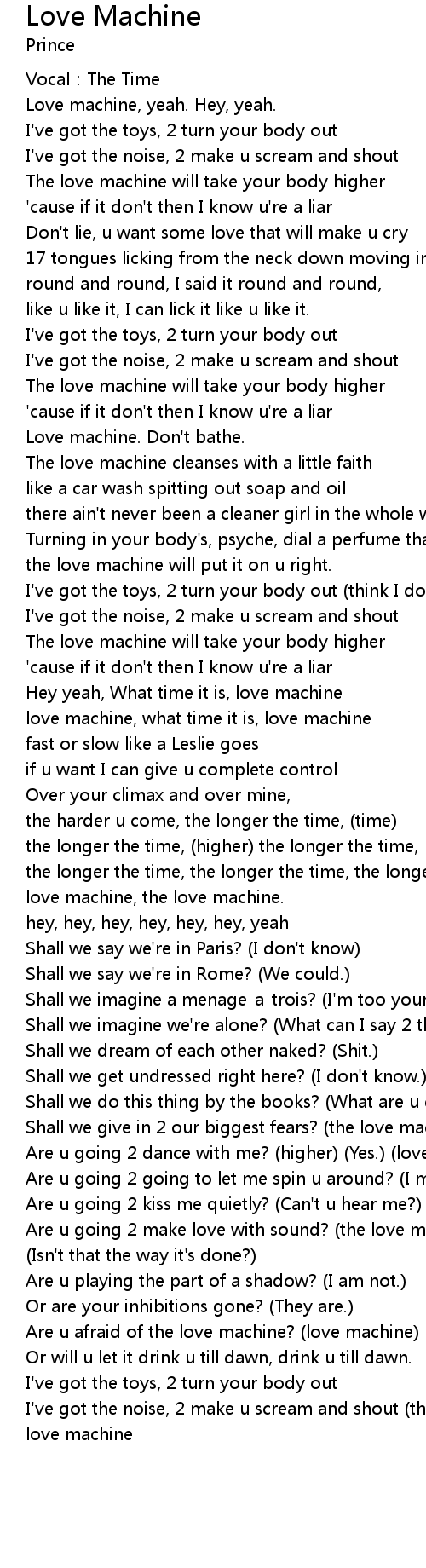 | Are u afraid of the love machine? (love machine) (Hell no) | |
